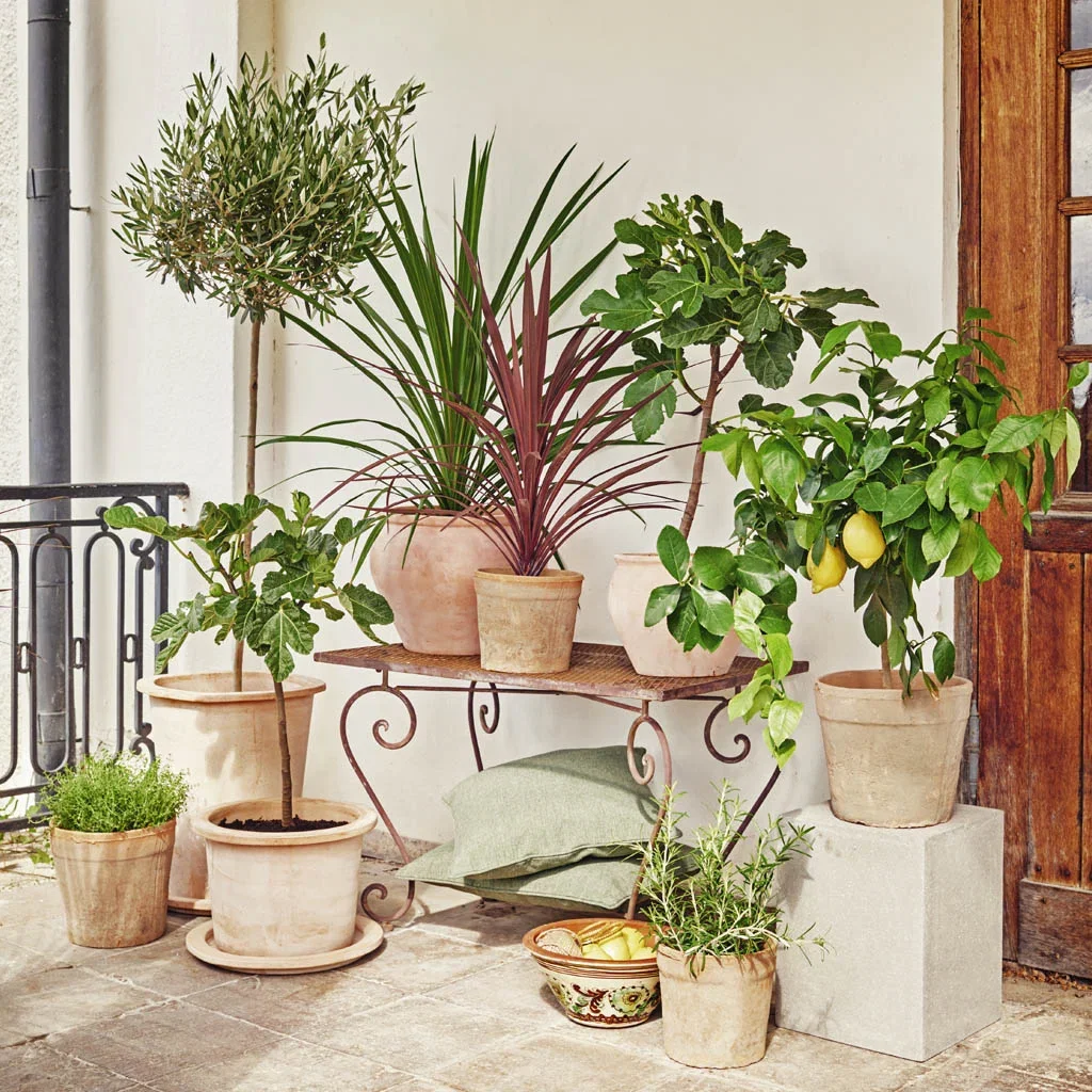 Materialer som naturstein og keramikk er typiske for middelhavshager og gir en autentisk følelse. Det er rett og slett en rask vei til riktig stemning. - Plant i potter og krukker