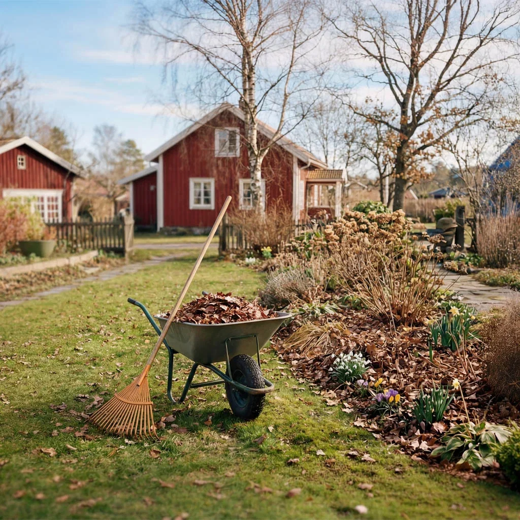 Rens bort gamle planterester og løv og hjelp plantene våkne til liv etter vinterhvilen. Med en god hekksaks og annet verktøy er det lett å gjøre det vårfint i hagen og på uteplassen. Litt løv og planterester kan med fordel ligge igjen mellom busker og stauder. Dette råtner og gir jorden næring og struktur. Samle alt du har ryddet i en kurv eller trillebår, og gjør gjerne en liten sortering før du legger det i komposten slik at forråtnelsesprosessen går raskere.