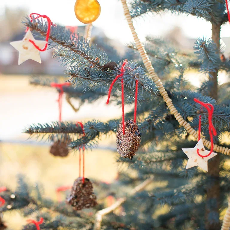 Ønsk fuglene god jul med deilig julefuglemat, og pynt opp ute samtidig. Litt ekstra kjærlighet til fuglene kan skape julemagi for både små og store.