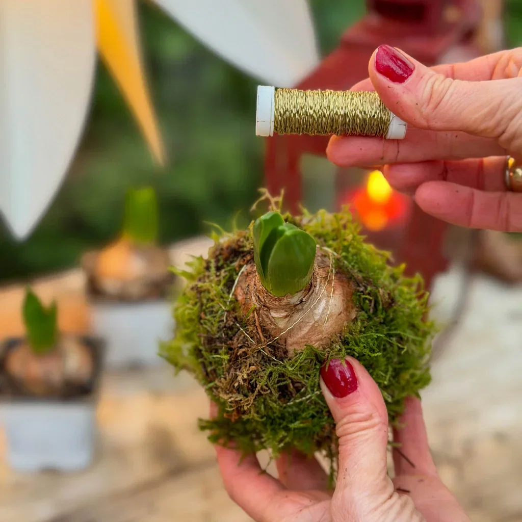 3. Bruk gullsnøre til å surre rundt og feste mosen.