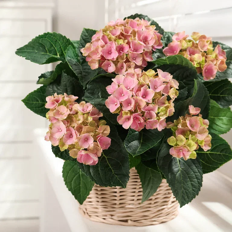 Hortensia brukes som stueplante innendørs i vintermånedene og er den beste luftfuktende planten. Hortensia er å få kjøpt i butikk fra januar.