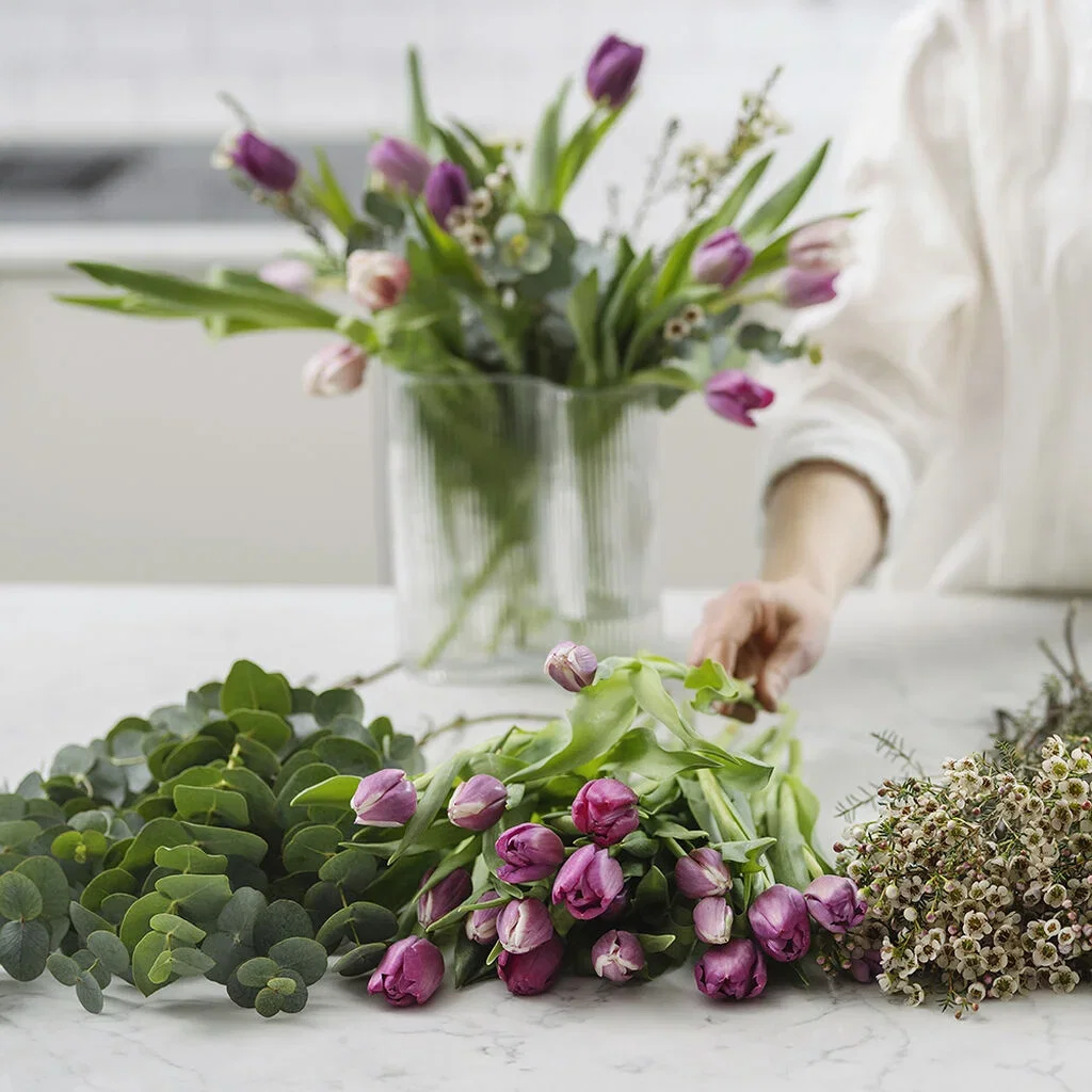 De alltid populære tulipanene lyser opp ethvert hjem med sine vakre farger og friske, grønne blader. Her får du stelletips og inspirasjon til hvordan du kan lage en tulipanbukett på best mulig måte.