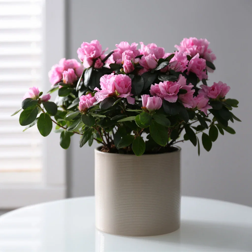 Azalea er en veldig blomstervillig plante som kommer i flere forskjellige farger med både enkle og doble blomster. Den er også en veldig god luftfukter.
