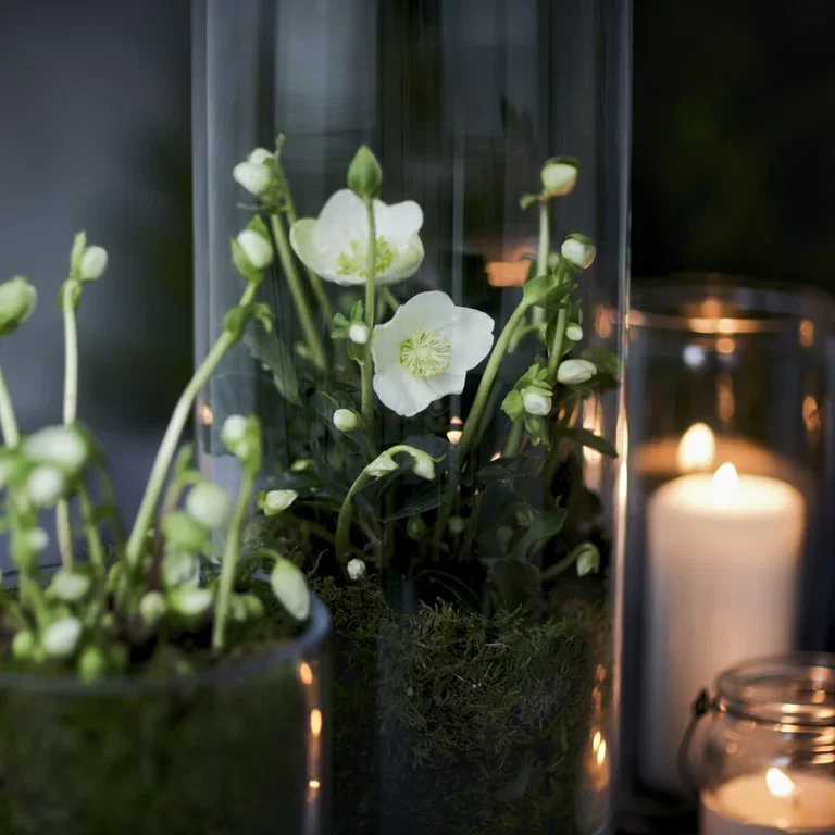 Julerosen er en flerårig staude som mange har som potteplante om vinteren. Gjør et enkelt løft inne ved å bruke en julerose som er tilpasset for inneklimaet, for eksempel Verboom Beauty. Sett den i en potte og dekk med mose eller ha som snittblomster i en vase. Til jul er det også fint la julerosene være en del av en julegruppe sammen med kongler, grankvister og nisser.