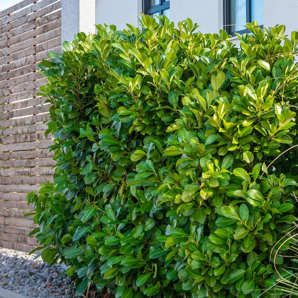 Skap en frodig ramme rundt hagen med laurbærhegg. Denne eviggrønne planten har et tett, glinsende og mørkegrønt løvverk, er lett å forme og krever minimalt med stell. Perfekt som hekk, uansett om du vil formklippe eller la den vokse fritt!
