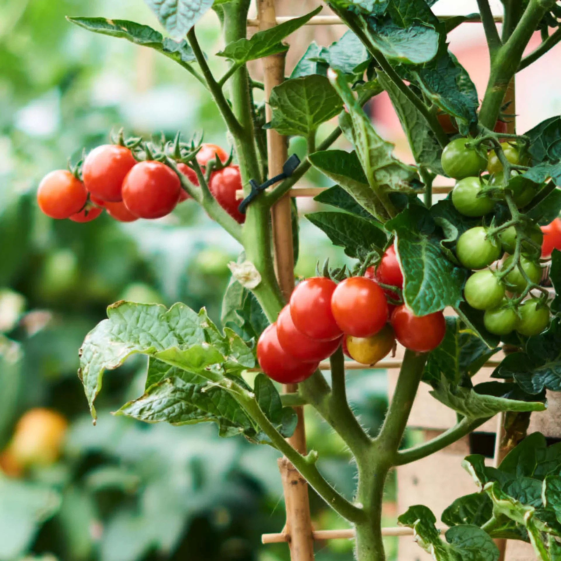 Hvis du har gleden av å eie et drivhus eller en dyrkingstunnel, kan du plante akkurat de tomatsortene du ønsker – til og med de høye variantene, men sørg for at de får god støtte, fest tomaten langs støtten med tomatklyper eller snor. - Plant tomater på friland og i plantekasse