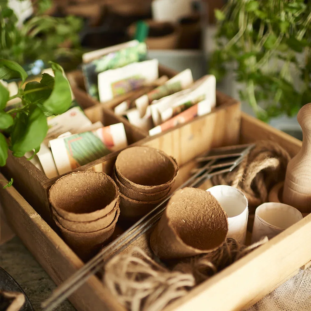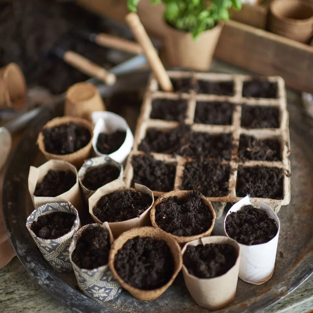 Pluggbrett og potter i biologisk nedbrytbart materiale