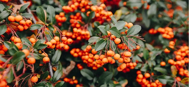 For en mer dramatisk effekt kan du gå for den tornete busken ildtorn som får klare, røde rognebærlignende bær. Den tåler både halvskygge og tørke, og trenger ikke beskjæres. Busken er full av tornete grener.