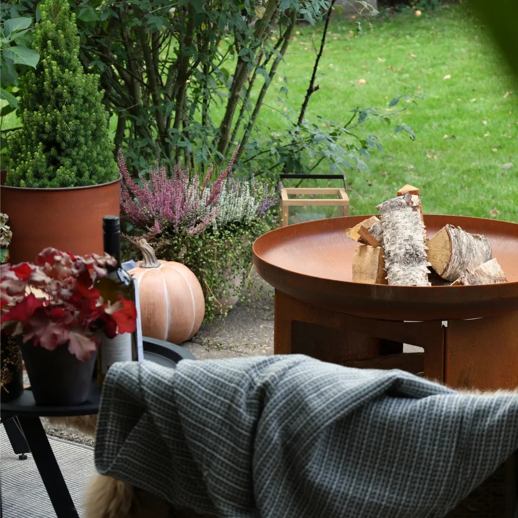 På ettermiddagen kan bålpannen bli et samlingspunkt for en enkel middag ute – prøv å grille grønnsaker, ostesmørbrød eller lage en gryte over glørne. Når mørket senker seg, gir bålpannen både lys og varme, og forvandler uteplassen til et sted for lange samtaler og rolig stemning.