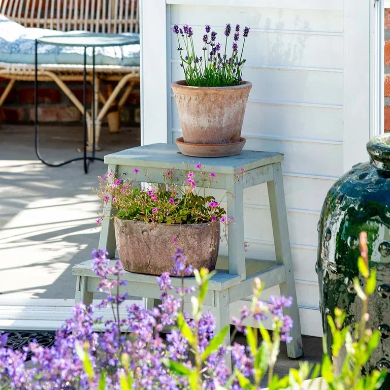– De er ekstra vakre ytterst i bed for de velter seg så vakkert over kanten, og de fargesterke blomstene gjør så mye ut av seg. Lavendel som bor fast i potter hos meg, blomstrer vanligvis rundt slutten av juni, så hvert år er det fristende å kjøpe med noen nye potter fra Plantasjen siden de blomstrer enda litt tidligere, sier hun.