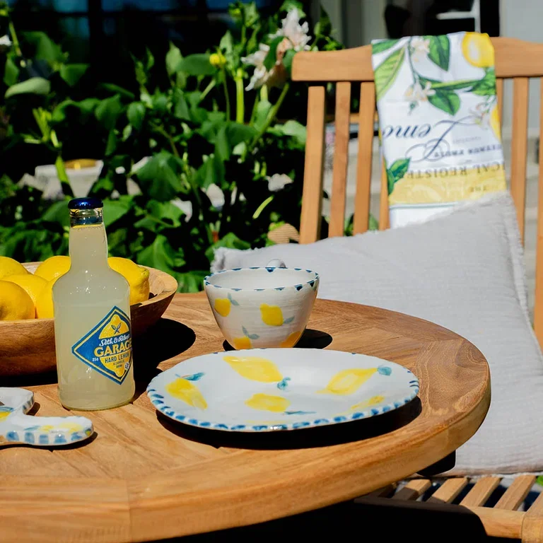 – Det er så vakkert med de herlige naturfargene med hint av mint og planter i krukker. Det skaper feriefølelse i hagen vår, sier Anniken.
