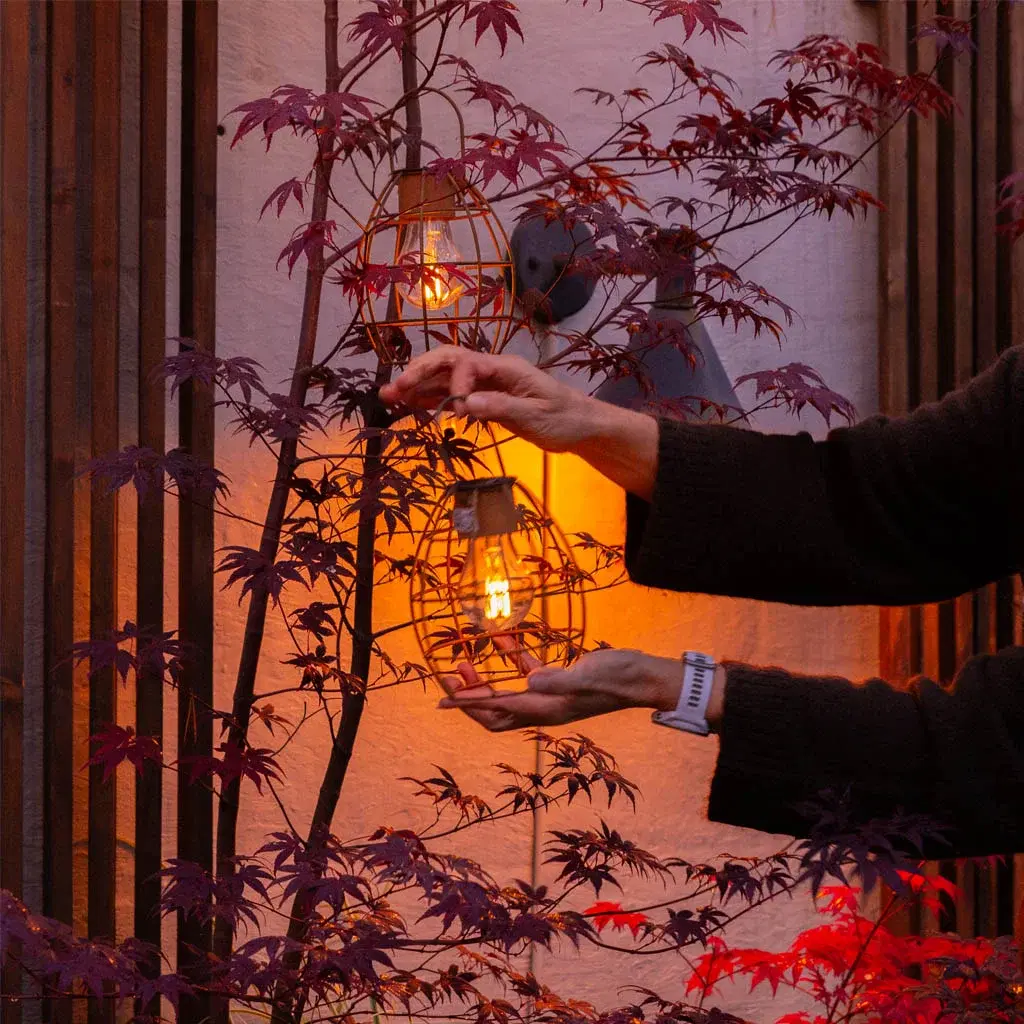 - Mobil belysning er bærekraftig og fleksibelt. Sørg for å ha en del frittstående lykter som du kan flytte rundt og bruke i de ulike sonene. Det gir deg muligheten til å ommøblere og skape nye inntrykk gjennom hele hagesesongen.