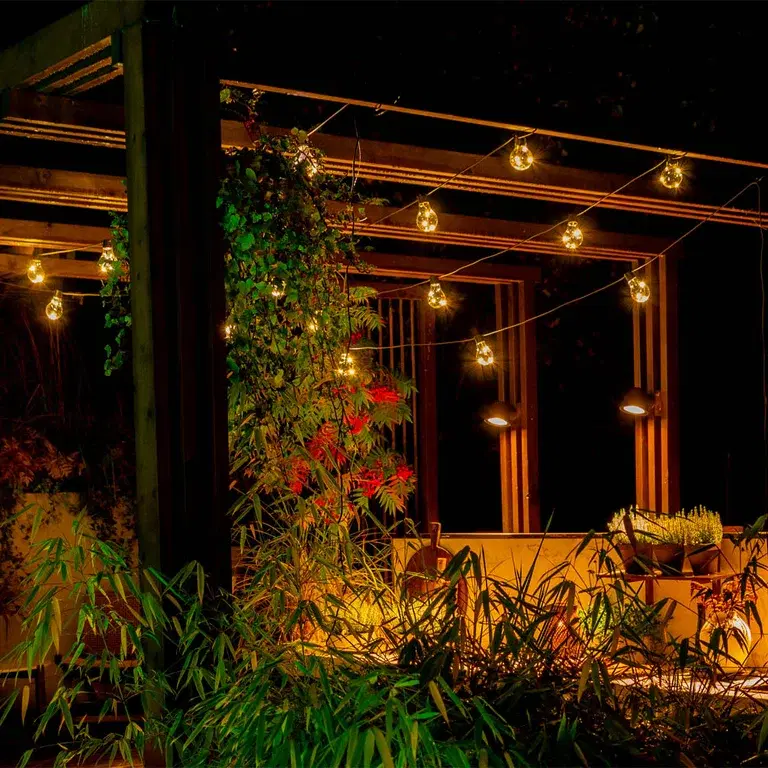 - Unngå kun å lyse opp soner nærmest boligens vegger. Belysning i utkanten av hagen gir økt romfølelse. Tenk at lysene skal kunne nytes fra flere vinkler, gjerne også inne fra boligen eller fra en hagestue.