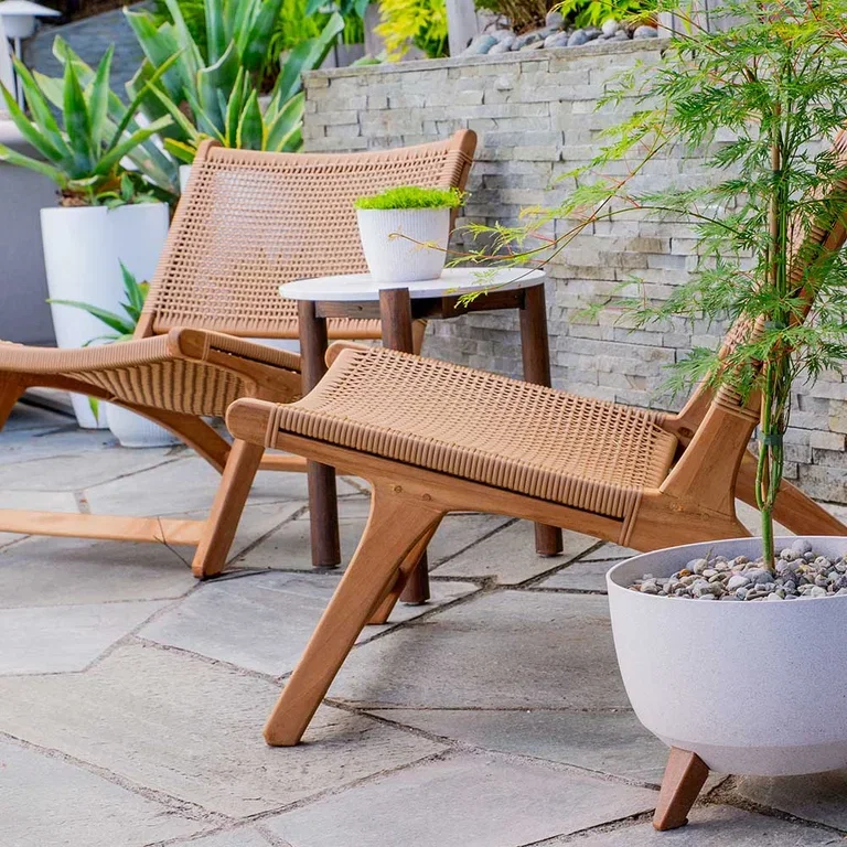 – Store potter og urner med planter i fungerer fint som avgrensing, gjerne med høye prydbusker bakerst og lavere planter foran. Flyttbare skillevegger er også fine rominndelere, og lyslenker gir en fin sonemarkering. Skillene bidrar til å gi uterommet et ryddig uttrykk og samtidig skape en lun og intim følelse.