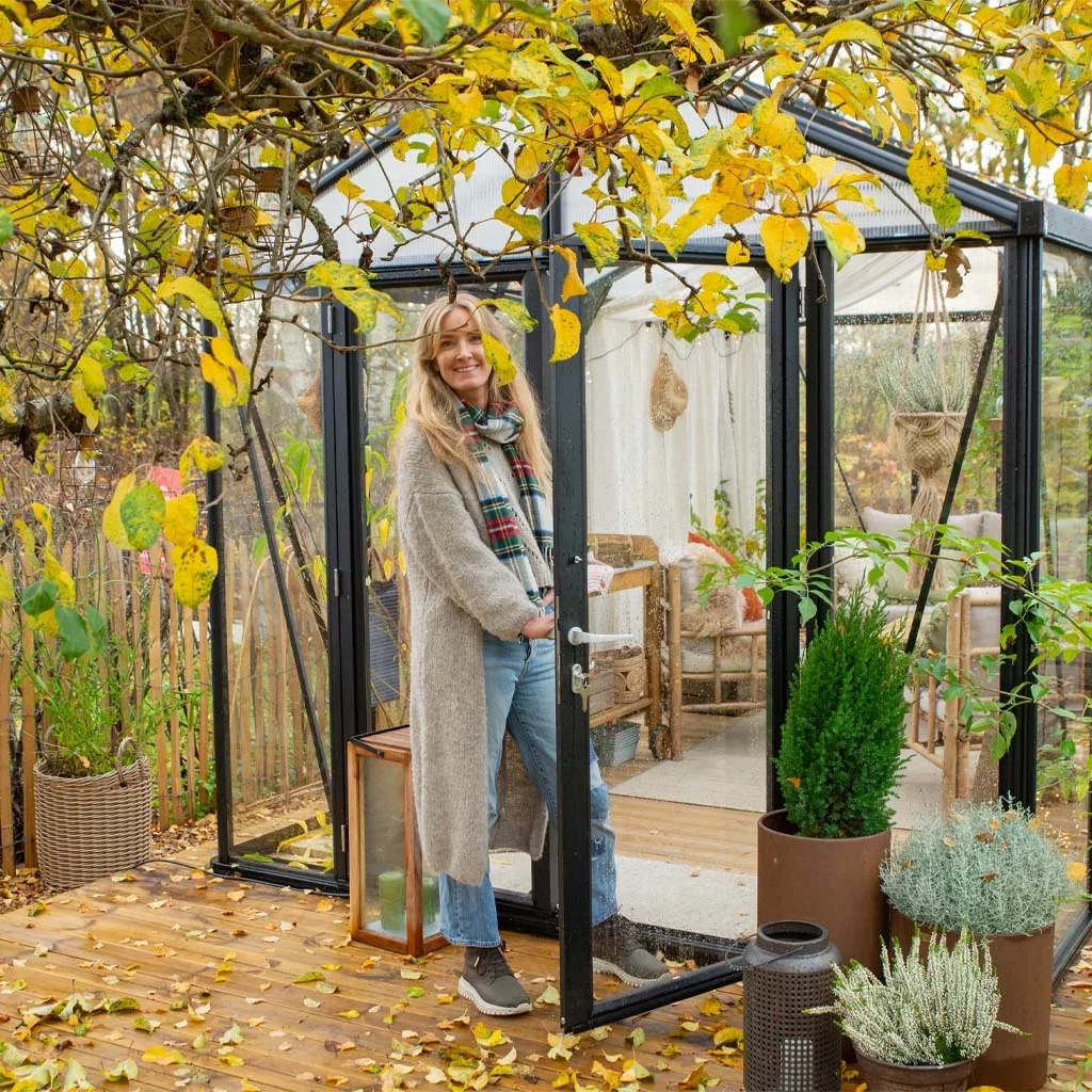 – Uterommet kan fortsatt nytes selv om det blir kaldere og tidligere mørkt. Da er det bare å tenne lys og sette ut en liten ovn i drivhuset. Jeg elsker å gjøre plass til alt det gøyale som skal skje der fram til jul.
