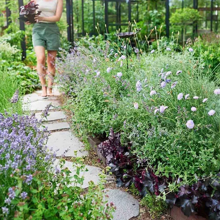 Velg gjerne kantplanter som forsterker den stilen du ønsker i hagen din. En blomsterbedkant med lavendel passer perfekt i den middelhavsinspirerte hagen, mens vakre karpatklokker forsterker stilen i den romantiske hagen. Når det gjelder kantplanter, er det bare fantasien som setter grenser. Plantene kan være høye, lave, frittstående eller strengt formklippede.