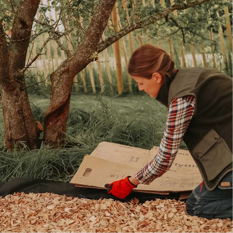 Start gjerne med et lag kompost og deretter med et ekstra tykt lag av papp eller aviser for å være sikker på at ugresset kveles.