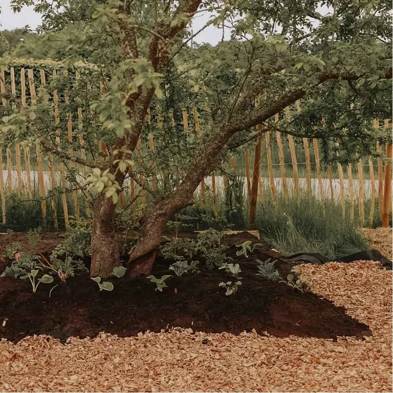Et tips er å dekke jorda rundt plantene med dekkbark eller flis fram til plantene har vokst seg til. Det hindrer frøugress fra å etablere seg, hjelper til med å holde jorden jevnt fuktig og tilfører næringsstoffer til jorda.