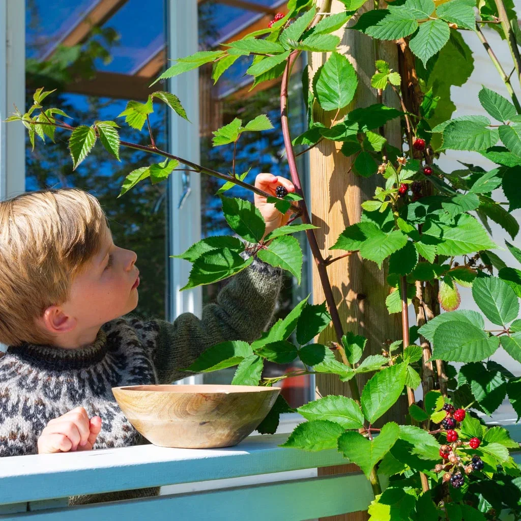 – Jeg anbefaler å velge sorten `Thornless Evergreen´ som er uten torner. Den er mest barnevennlig, tipser Therese.