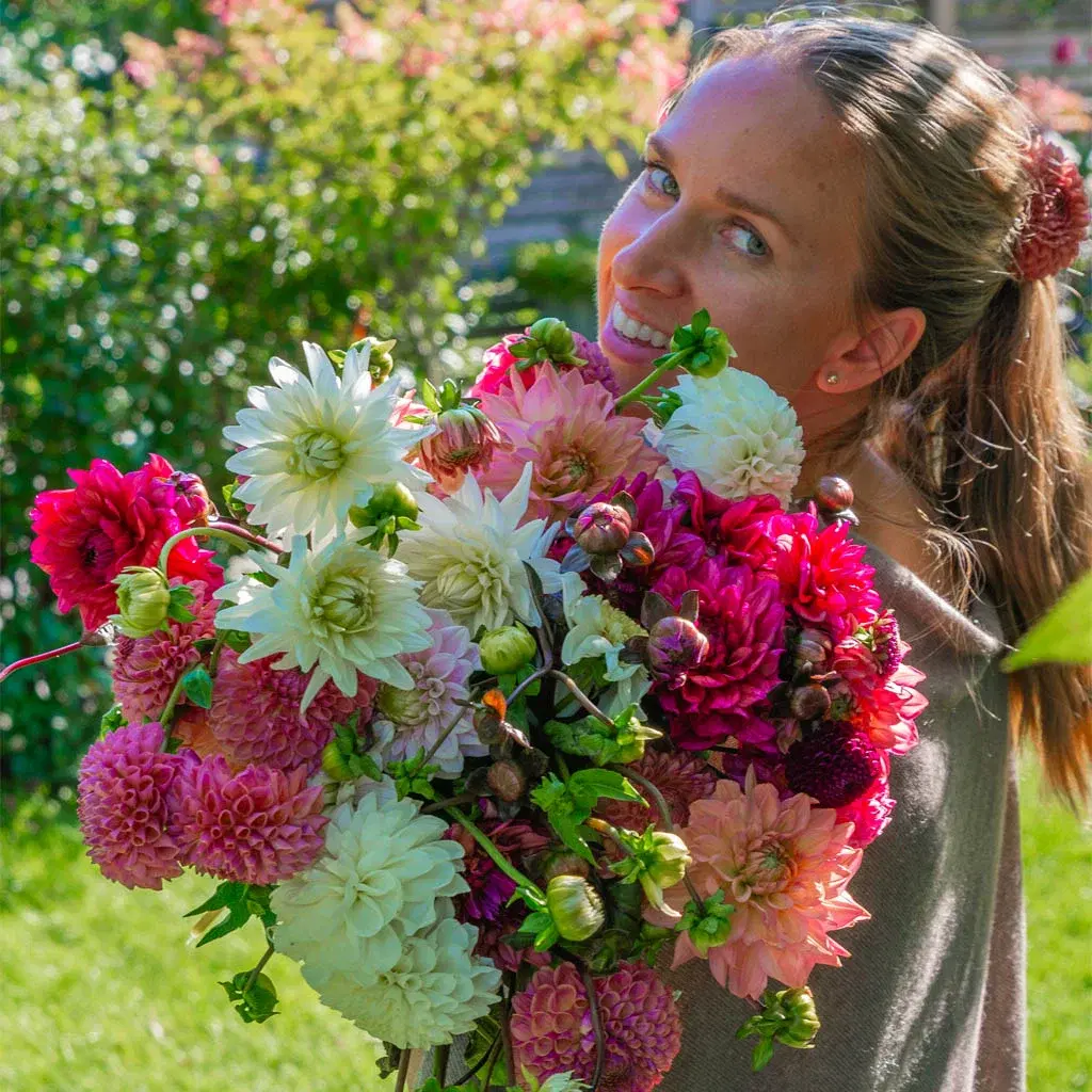 En bukett av lykke – alt dyrket i egen hage. Finnes det en større luksusfølelse?
