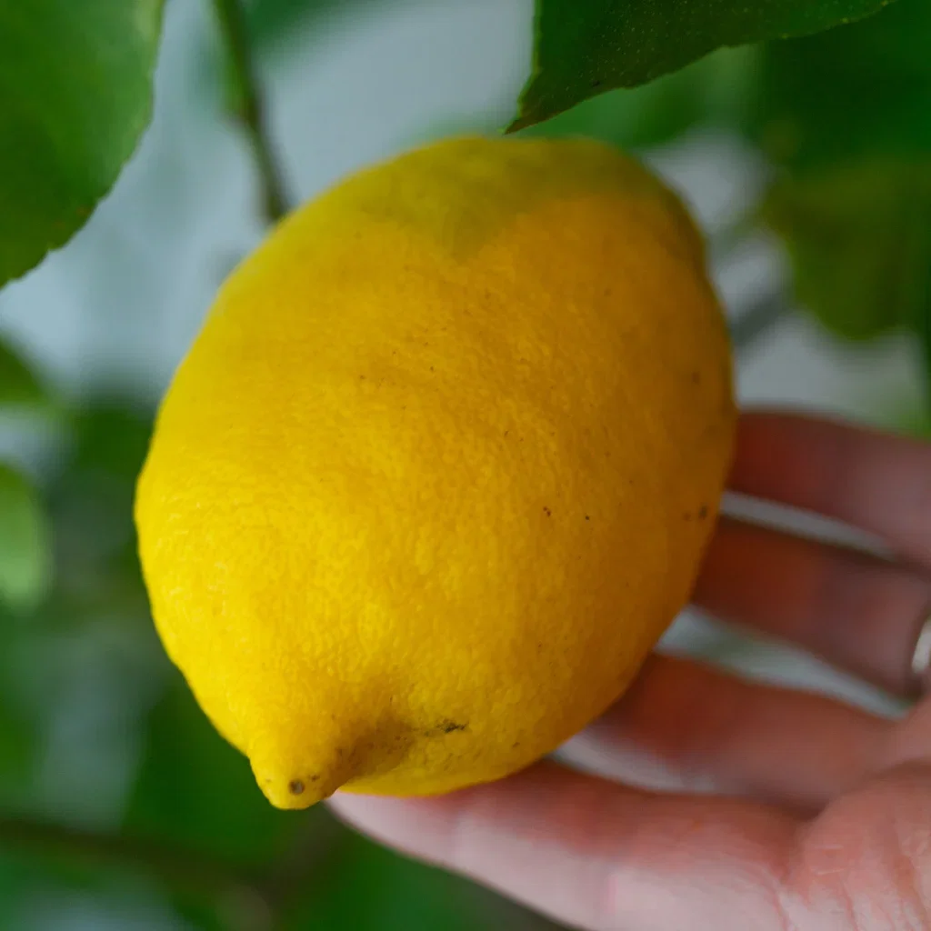 Sitrontreet som har fått overvintre inne i stua, får masse stell og kjærlighet og takker for omtanken med massevis av frukt, små knallgule soler som minner om vårsola.