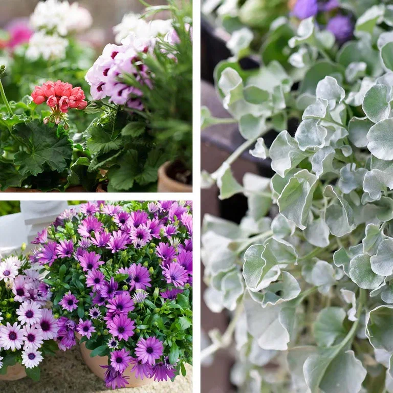 Pelargonia eller spanske margeritter sammen med Dichonda