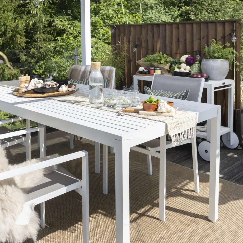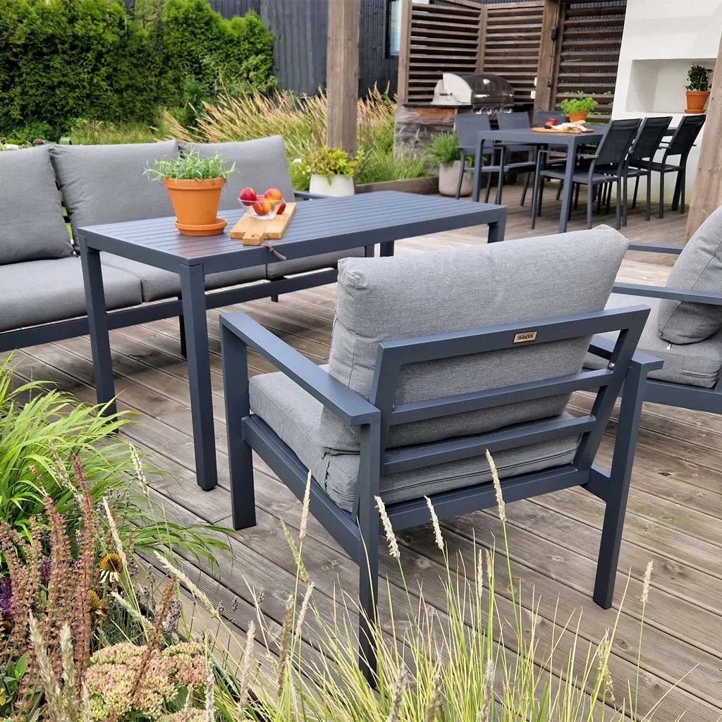 Møblene i Oslo-serien har solid aluminiumsramme og behagelige puter med avtagbare trekk. Møblene er designet for å tåle tidens tann og gi ret moderne preg til uterommet ditt.