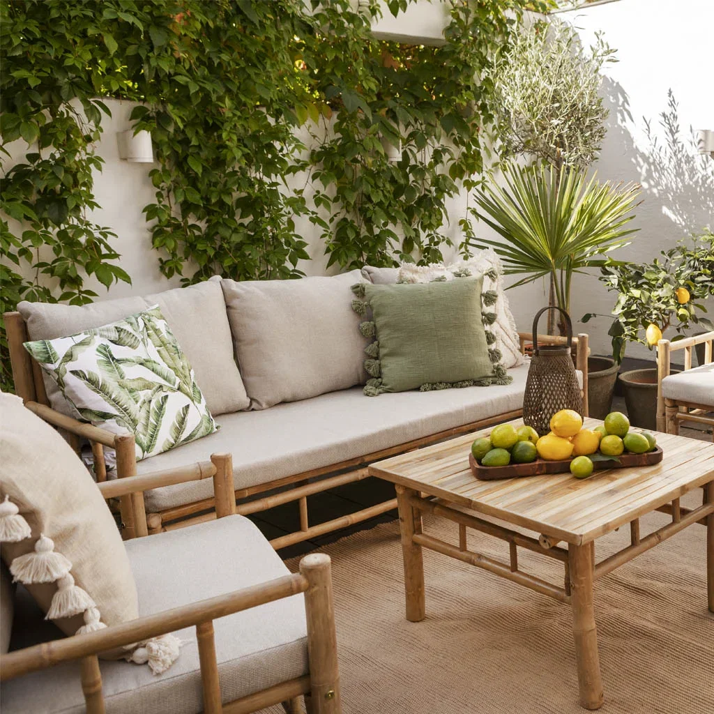 Bambusmøbler er snarveien til en tropisk stil på uteplassen, og materialet har omtrente samme fordeler og ulemper som møbler i ekte rotting.