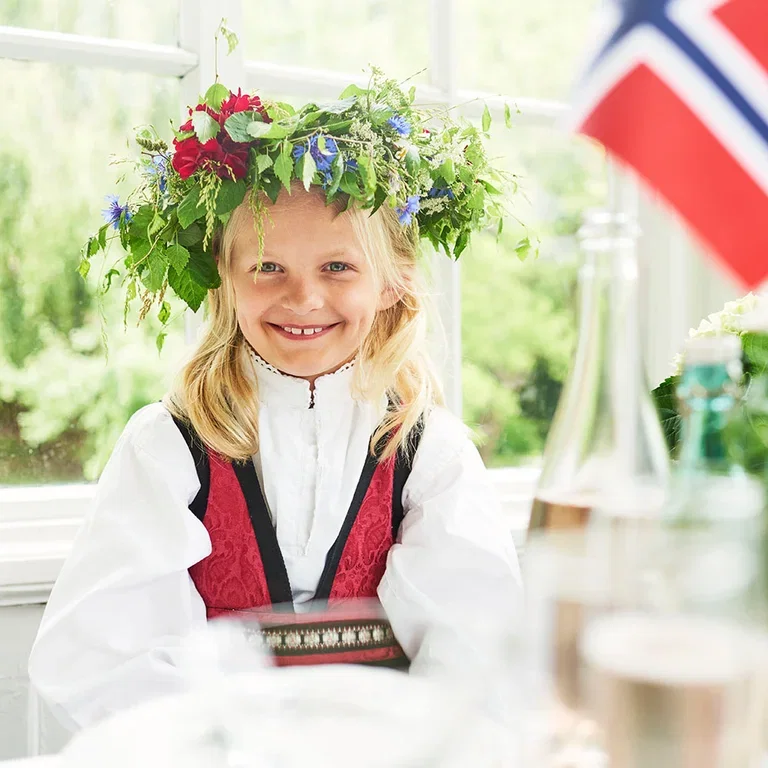 Feir 17. mai med fargerike blomster