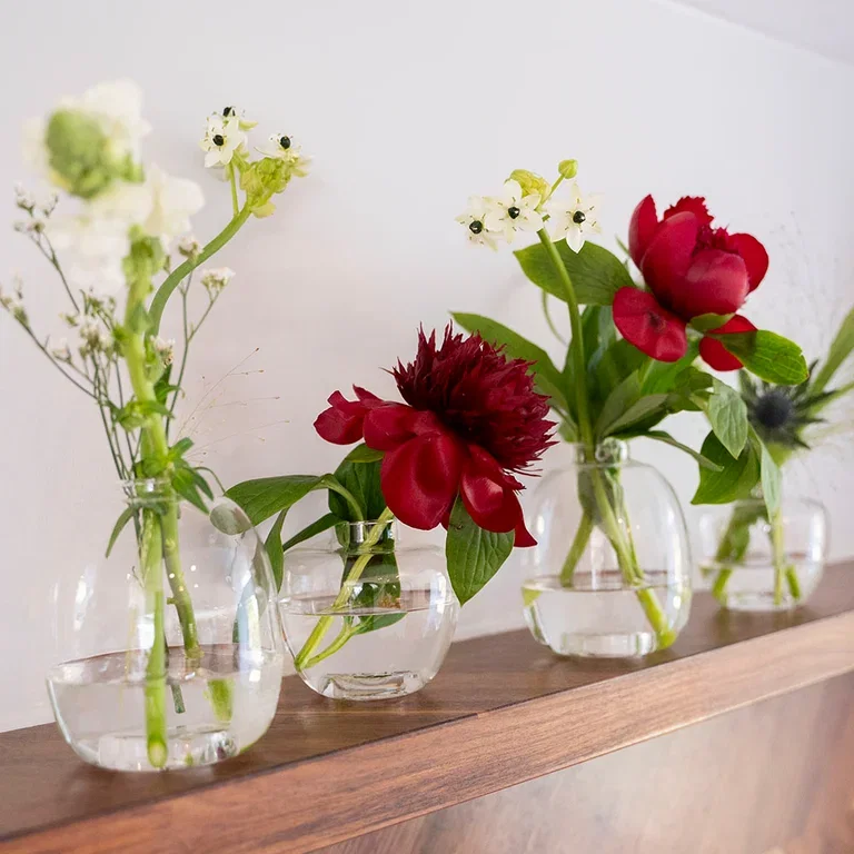 Snittblomster i småvaser er en enkel, men elegant løsning for å få både flaggets og naturens farger inn på bordet. Alt du trenger er snittblomster i rødt, hvitt og blått og noen små, søte vaser.