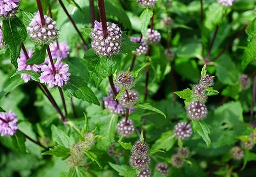 Mynte blomstrer også veldig vakkert med lyslilla blomster som vokser i kranser, men hvis du er ute etter å få mest mulig ut av myntens smak, bør du unngå at planten blomstrer, da dette reduserer smaken på bladene.