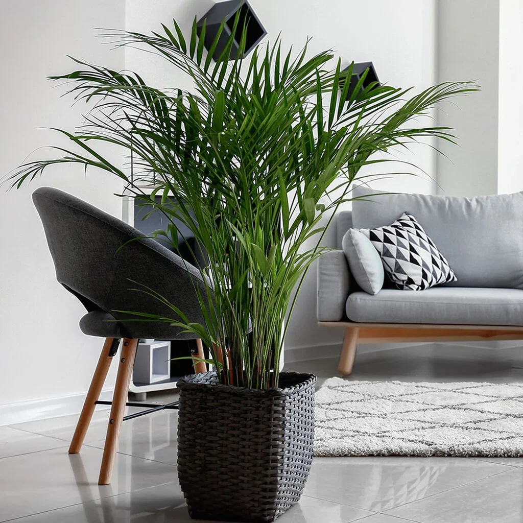 Arekapalmen er lettstelt og populær med fine blader og nesten gullskimrende stammer. Palmen er friskt grønn og trives godt i hjemmet ditt. Finnes i ulike størrelser for både vinduer og gulv.
