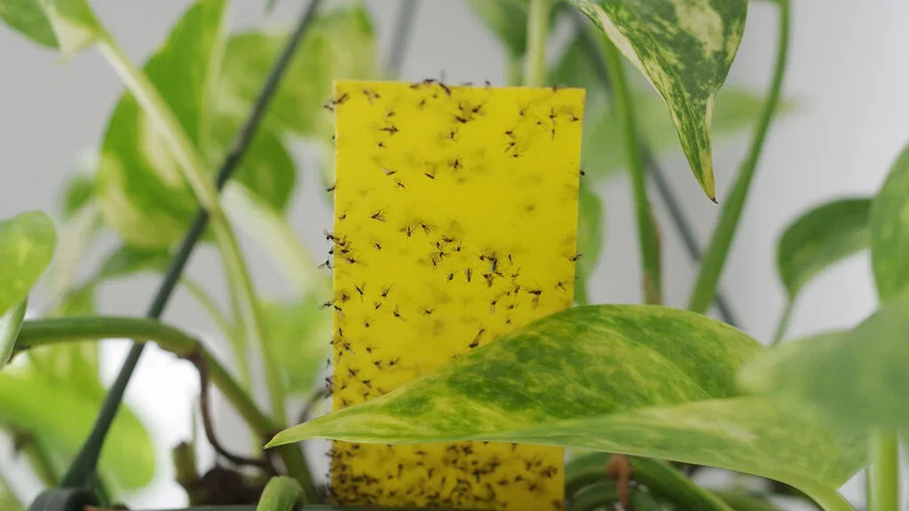 - Sett opp gule limfeller i og rundt pottene som er angrepet. Om du lar lyset stå på ved limfellene om natten, får du maksimal effekt.
