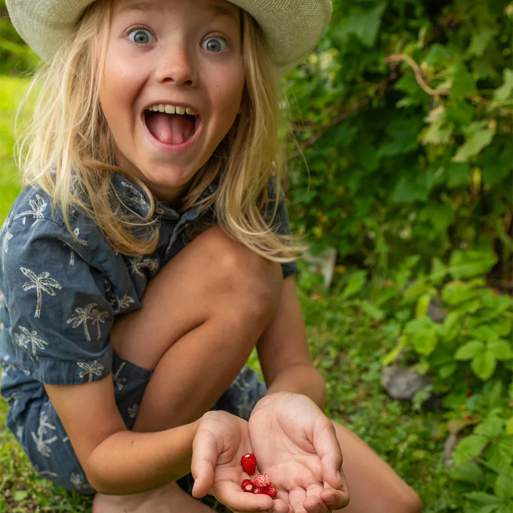 «Finn et strå,og træ dom på». Månedsbær er remonterende og produserer herlige søte bær gjennom hele sommeren. Nam!